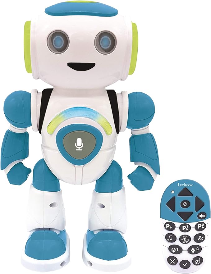 Lexibook - Powerman Jr. Smart Interactive Toy That Reads in The Mind Toy for Kids Dancing Plays Music Animal Quiz STEM Programmable Remote Control Boy Robot Junior Green/Blue - ROB20EN
