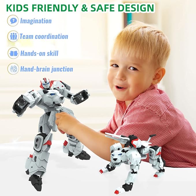 Animal Turn into Robot Toys Assembly Bear Action Figure for Kids Deformation Robot for Boys & Girls Ages 6-12