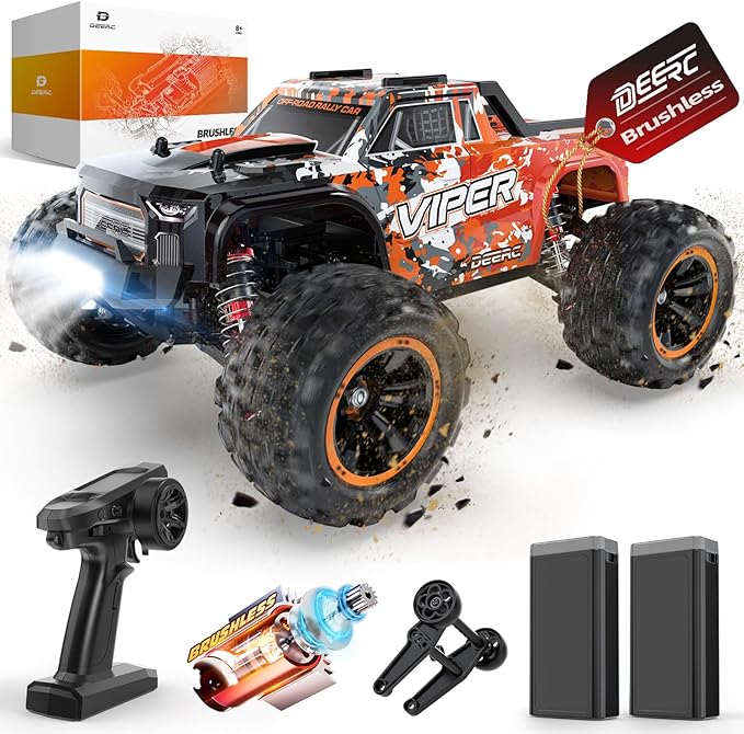 DEERC H16R Brushless Fast RC Cars,1:16 52KM/H High Speed Remote Control Car,4X4 All Terrains RC Monster Truck,Waterproof Off-Road Hobby Electric Vehicle Car Gift for Adults Boys,2 Li-ion Batteries