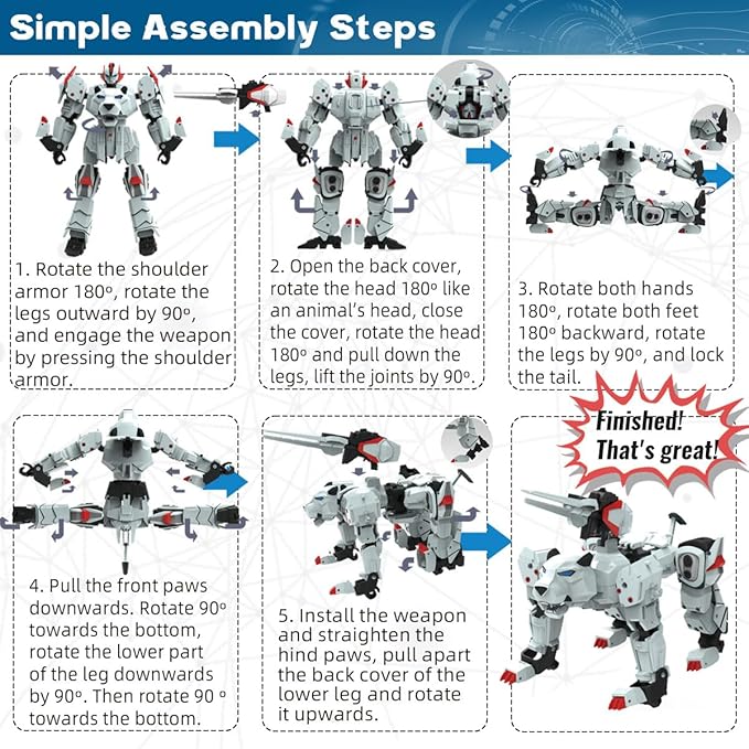 ▽Fun Animal Deformation Robot▼It can be deformed between the robot and the animal, with a weapon, so that your child can immerse in the fun of assembling the robot. It combines animals with mechanical soldiers, bringing double fun.▽Educational Learning Toys▼Animal figure and robots are always attractive to children. kids can pose in different positions to simulate the movement of animals and stimulate their creativity and practical ability in the process of playing.