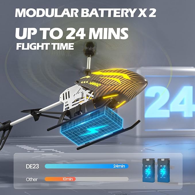 DEERC DE23 Remote Control Helicopter, RC Helicopters with 7 Colors Light, 2 Modular Battery for 24 Min Play, Altitude Hold, One Key take Off/Landing, 2.4GHz Aircraft Indoor Flying Toy for Boys Girls