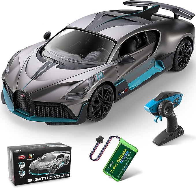 • MIEBELY Remote Control Car, Bugatti Divo 1/16 Scale Rc Cars 12Km/h, 2.4Ghz Licensed Model Car 7.4V 500mAh Toy Car Headlight for Adults Boys Girls Age 6-12 Years Birthday Ideas Gift