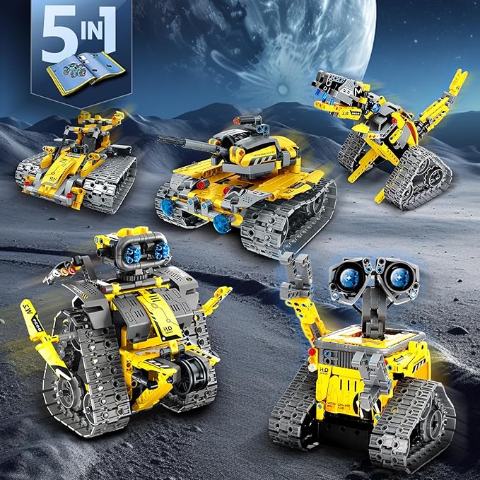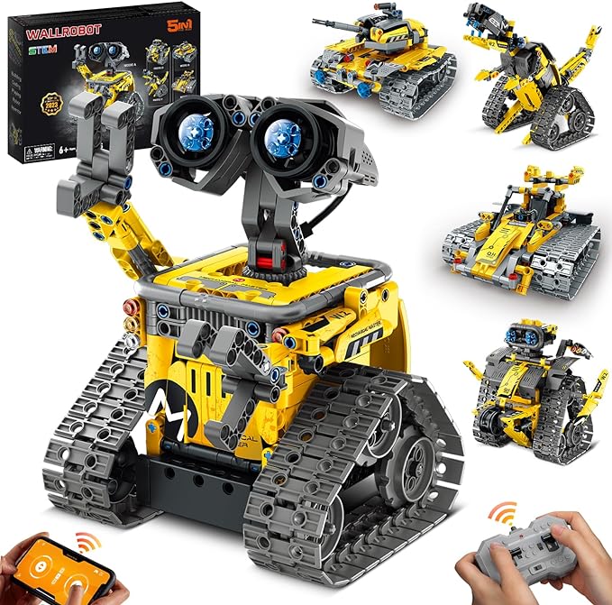 • Sillbird STEM Building Toys, Remote & APP Controlled Creator 5in1 Wall Robot/Explorer Robot/Mech Dinosaur Toys Coding Set, Creative Gifts for Boys Girls Kids Aged 6 7 8-13